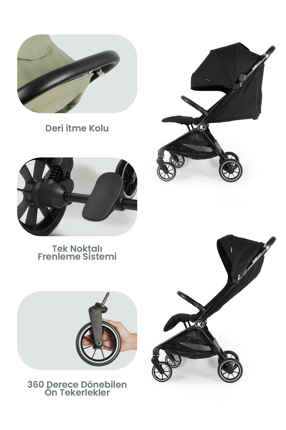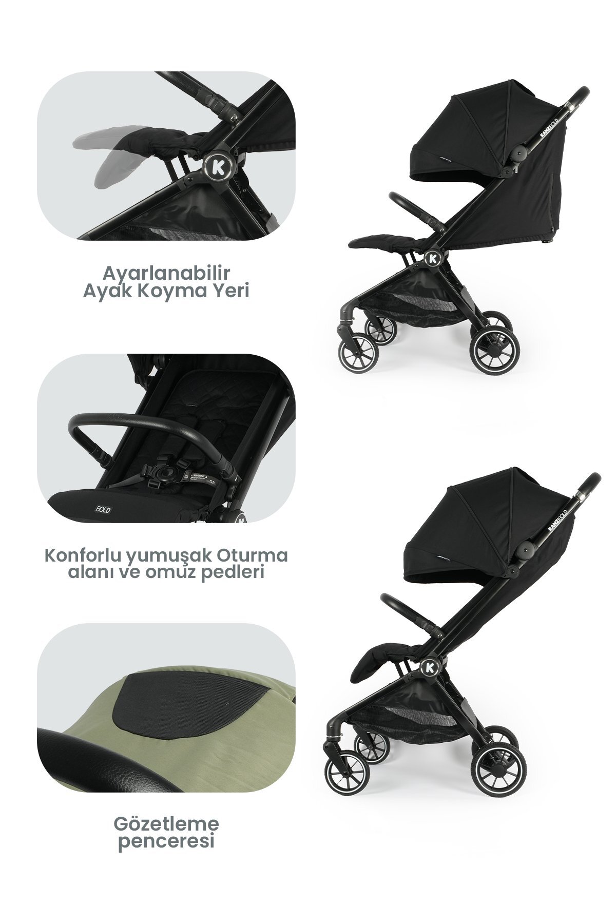Kanz Bold Autofold Kabin Bebek Arabası Iron Black